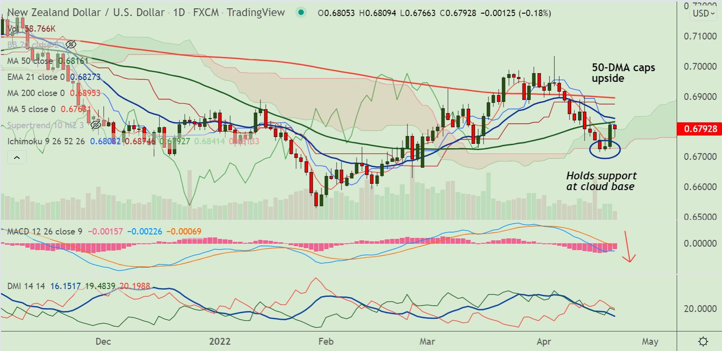 Summary: NZD/USD struggles at 50-DMA and cloud top resistance. Major trend is bearish, while intraday bias is neutral.