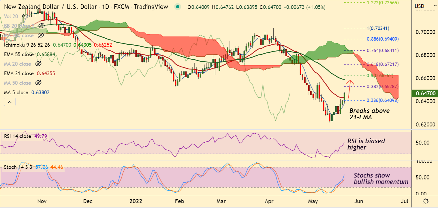 Support levels - 0.6435 (21-EMA), 0.6380 (5-DMA)