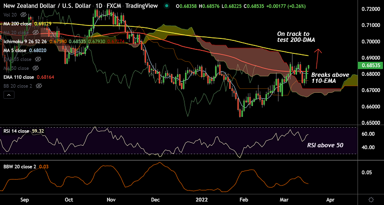 Summary: NZD/USD trades with a bullish bias. The pair is on track to test 200-DMA at 0.6913.