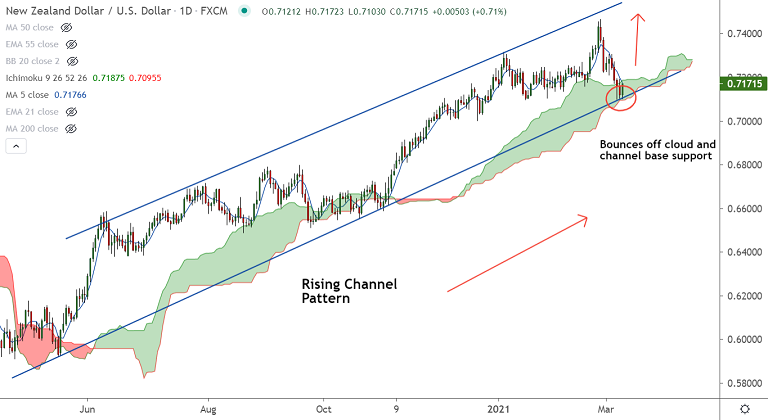 Pullback in the pair has held above 0.71 handle and the pair finds strong support at daily cloud and channel base.