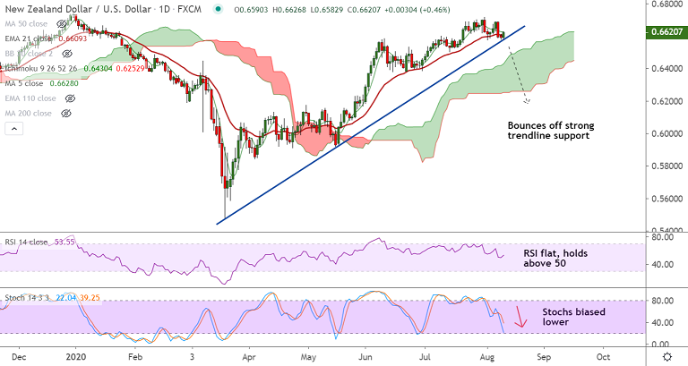 NZD/USD has paused downside and bounced off major trendline support at 0.6575.
