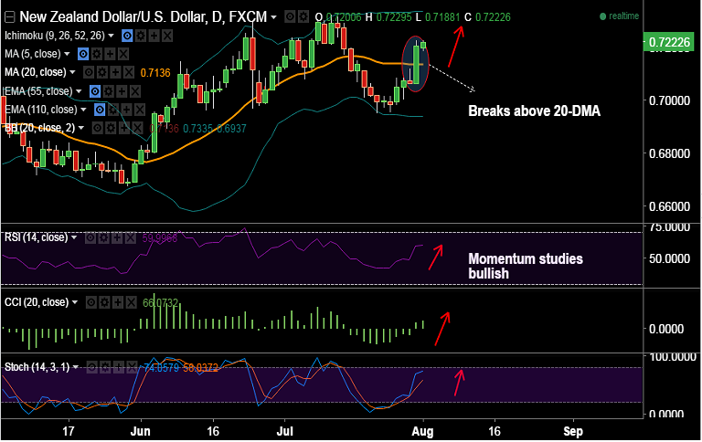 Recommendation: Good to go long on dips around 0.7210/20, SL: 0.7150, TP: 0.7240/ 0.73