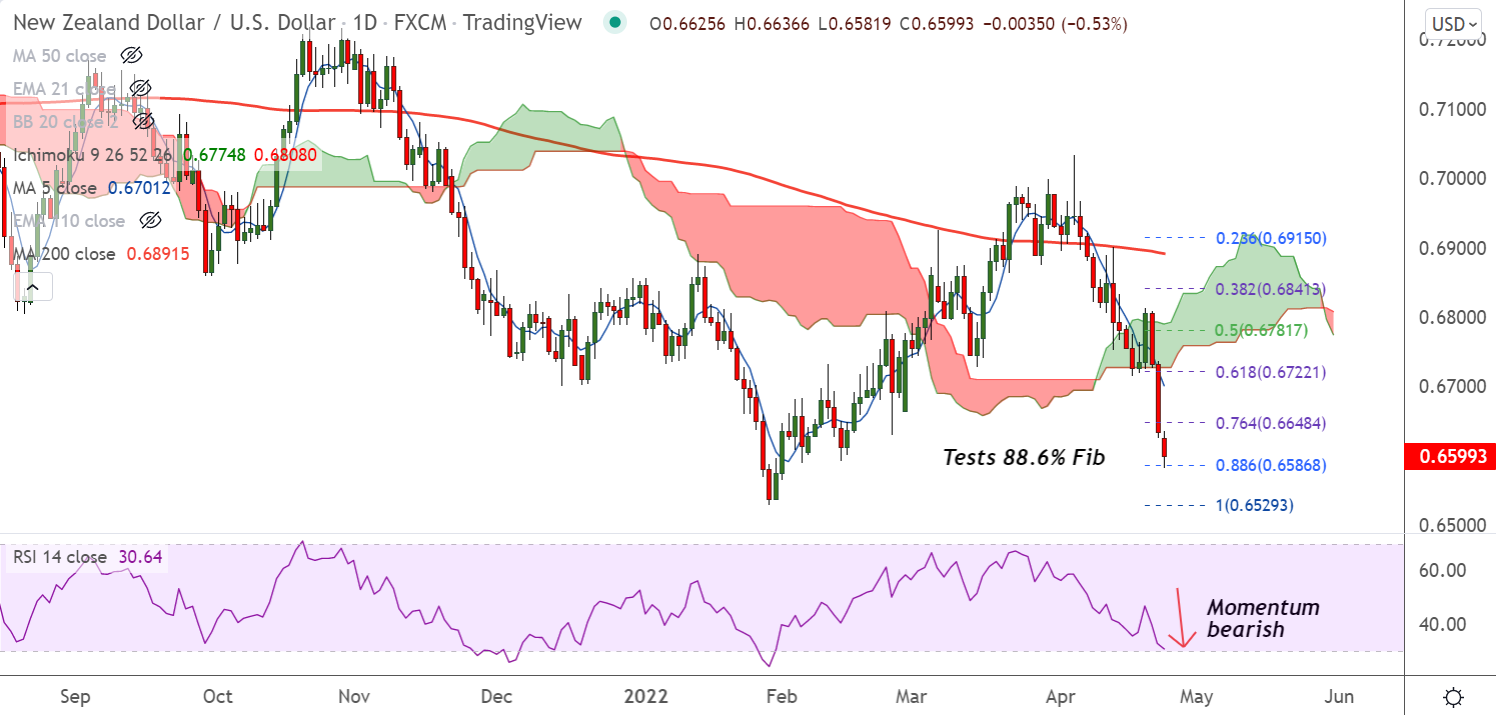 Summary: NZD/USD was trading with a strong bearish bias. Scope for test of yearly low at 0.6570.