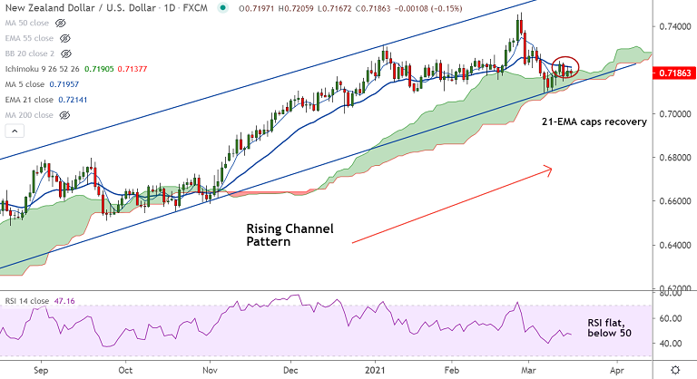 Resistance levels - 0.7214 (21-EMA), 0.7240 (20-DMA), 0.73