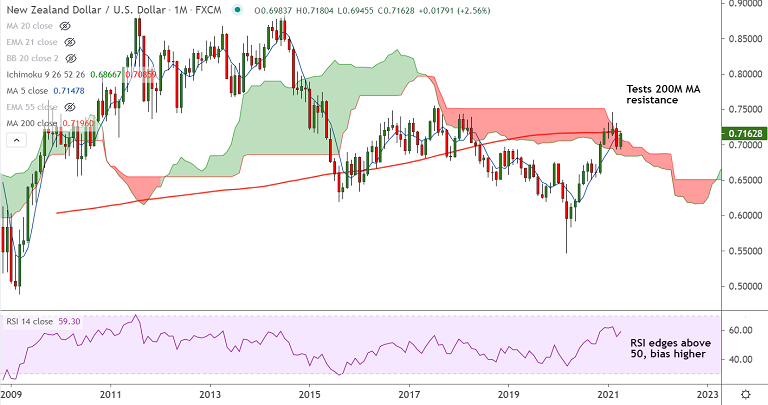 On the flipside, failure to hold above monthly cloud and 55-EMA will negate any bullish bias. Focus on US Michigan Consumer Sentiment Index for impetus.