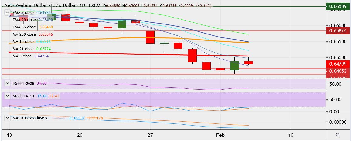 - On the downside, support is seen at 0.6465, a break below could drag it till 0.6449.