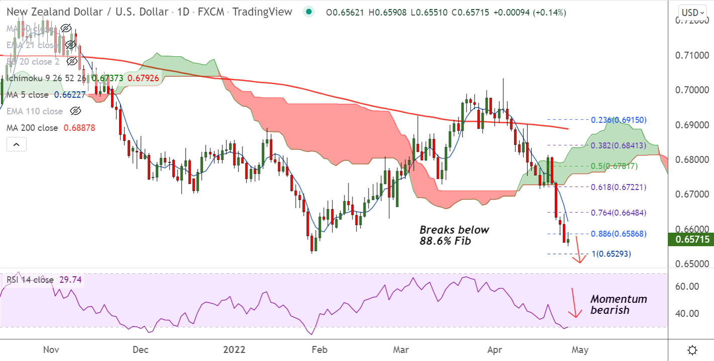 The pair has erased early gains, slips lower from session highs at 0.6590, outlook remains bearish.