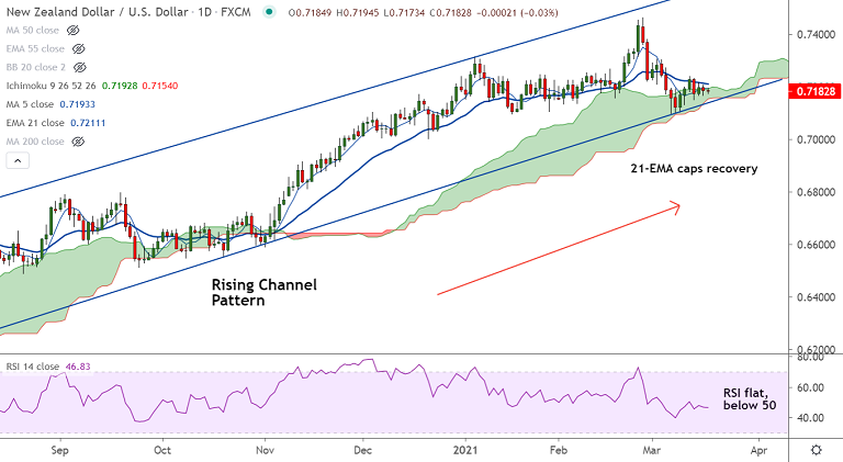 Resistance levels - 0.7210 (21-EMA), 0.7239 (20-DMA), 0.73