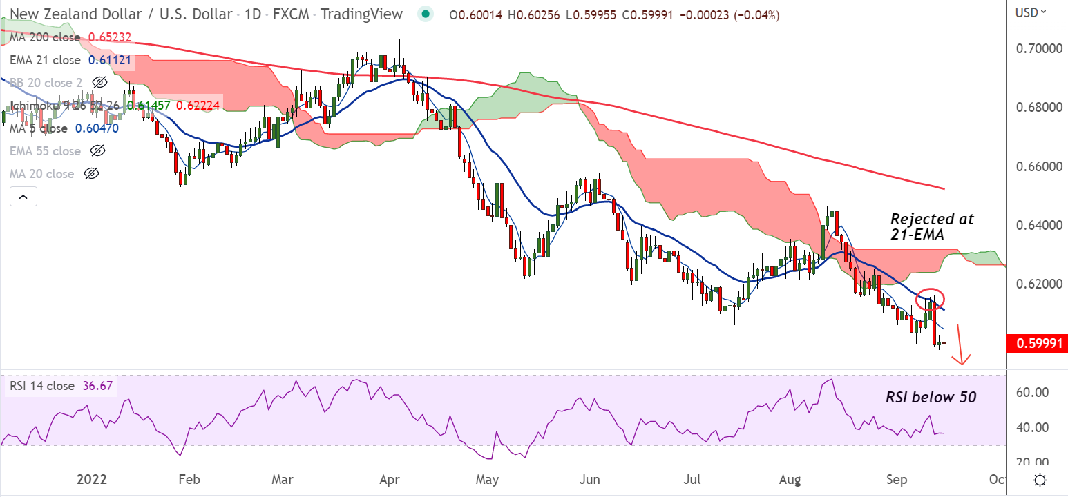 Summary: NZD/USD poised for further downside, next bear stop likely at 0.5920 (May 2020 low).