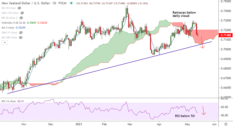 NZD/USD was trading largely unchanged at 0.7152 at around 11:40 GMT, bias bearish.