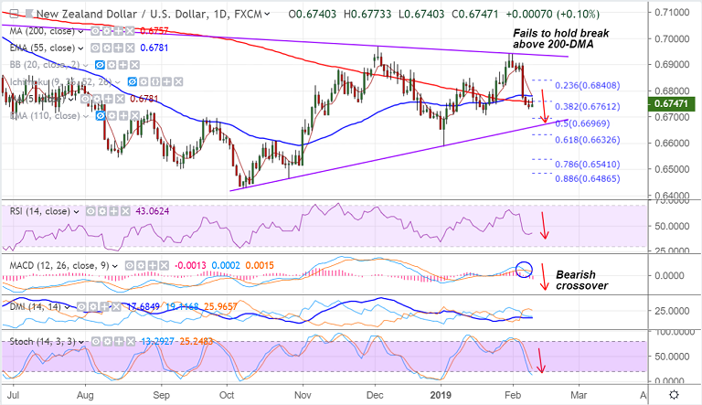 - Price action failed to hold break above 200-DMA, scope for further weakness.