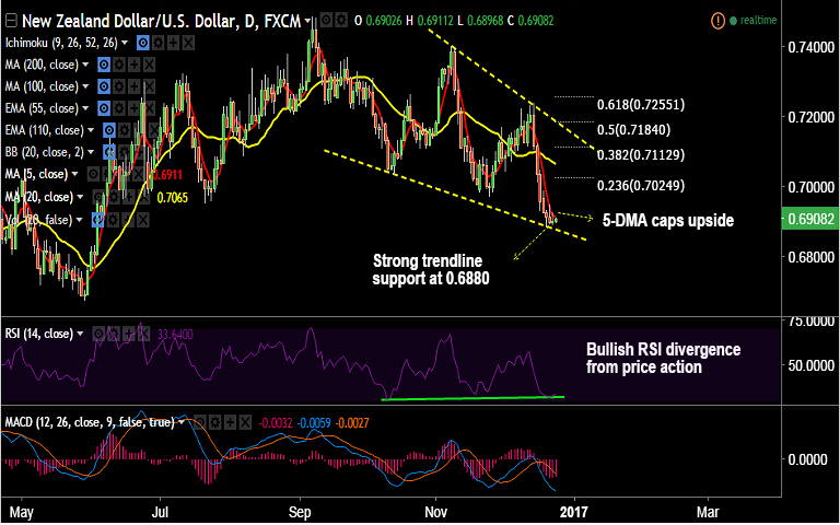- Resistance levels - 0.6911 (5-DMA), 0.6947 (Dec 12 high), 0.70, 0.7064 (20-DMA)