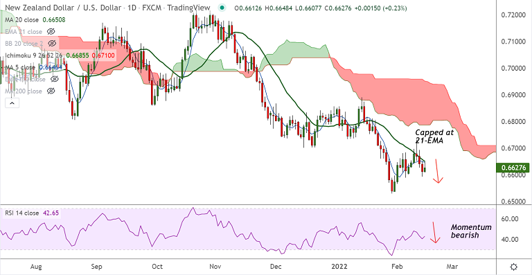 Resistance levels - 0.6645 (5-DMA), 0.6664 (21-EMA), 0.67