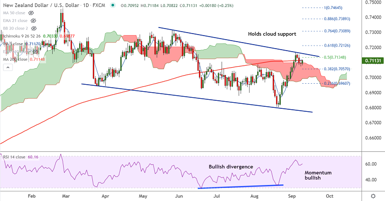 Price action is hovering around 200-DMA resistance at 0.7114, breakout above will see upside continuation.