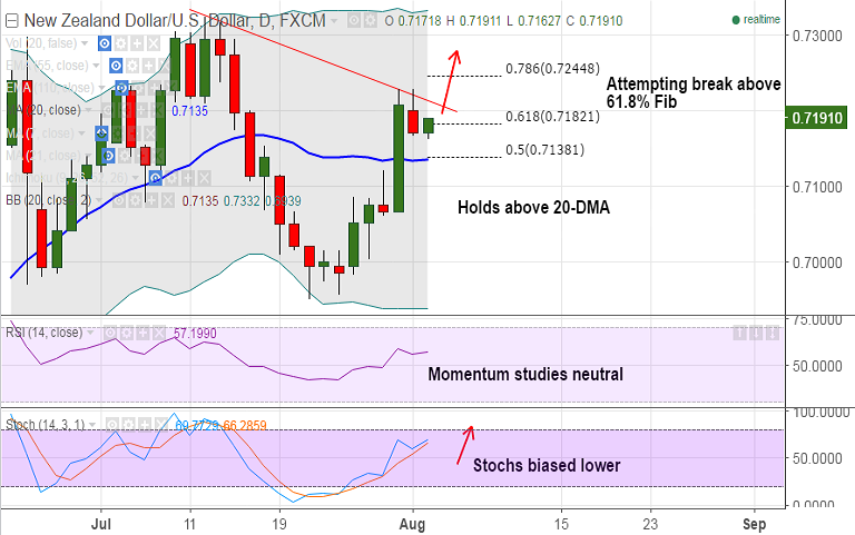 - NZD/USD is attempting a break above 0.7182 (61.8% of 0.7325-0.6951 fall).
