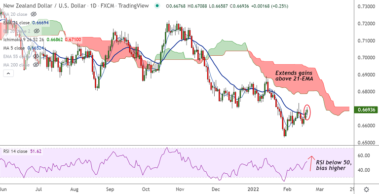 Summary: NZD/USD poised to extend gains above 21-EMA, eyes 55-EMA at 0.6742.