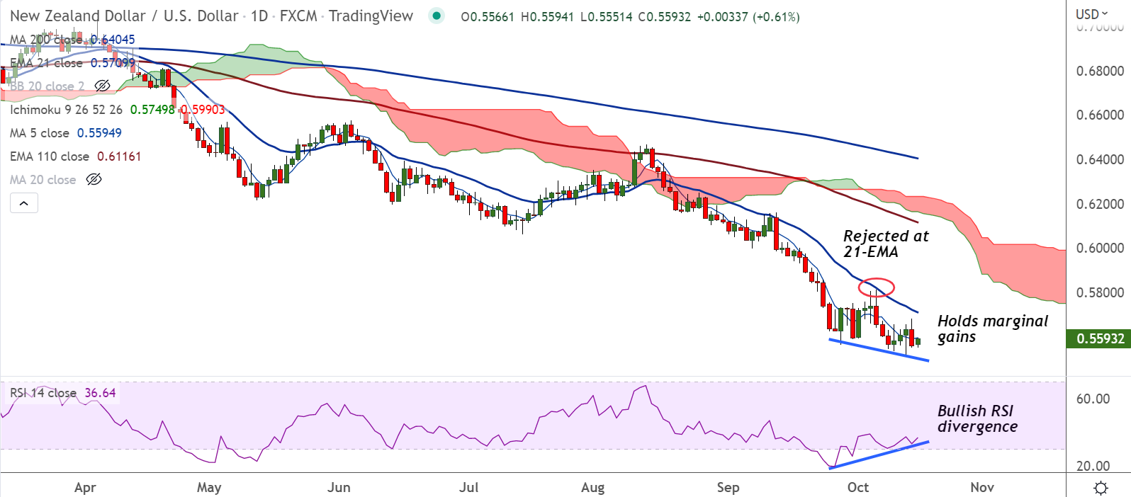 - The pair is testing -DMA resistance at 0.5594, break above will fuel further gains