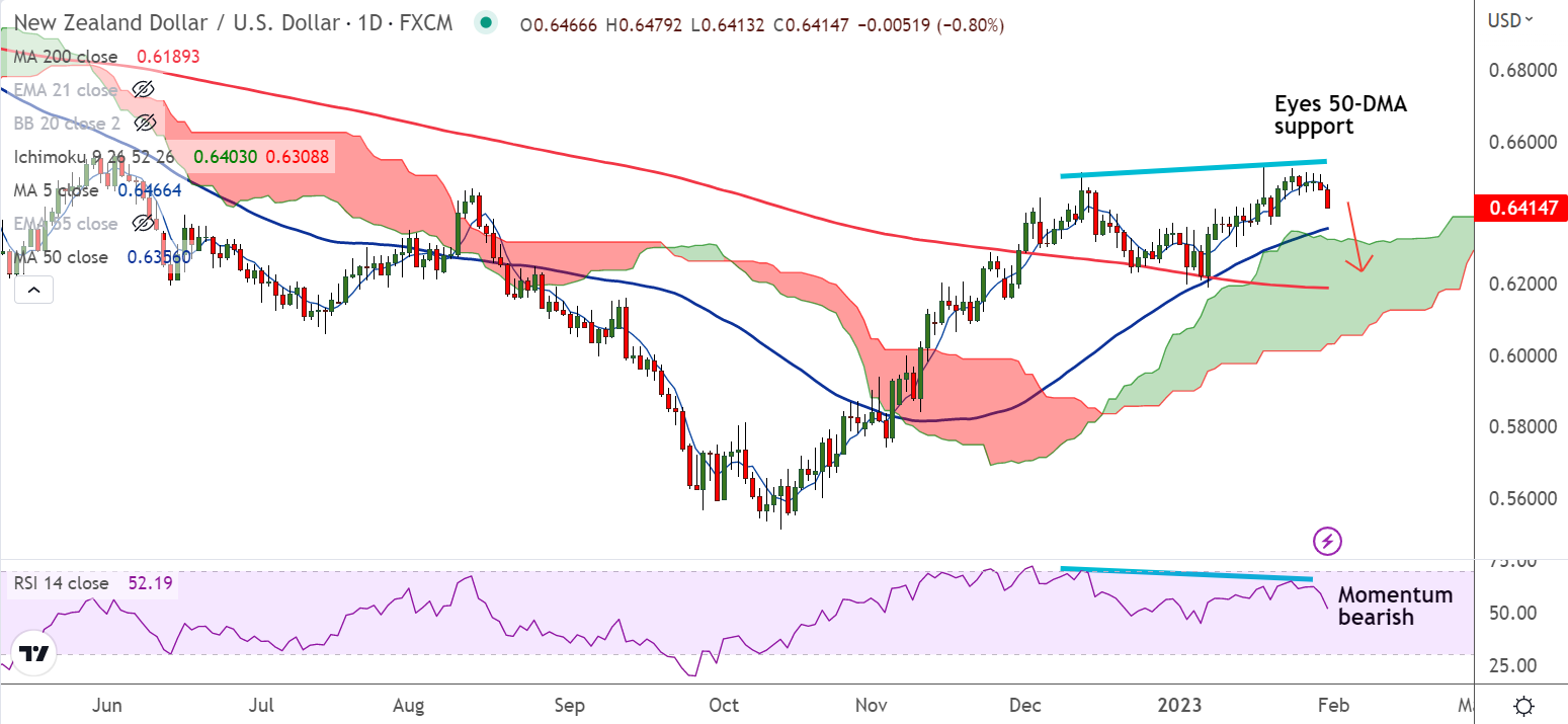 NZD/USD price action has slipped below 200H MA, intraday bias has turned bearish. Upside remains capped below 5-DMA.
