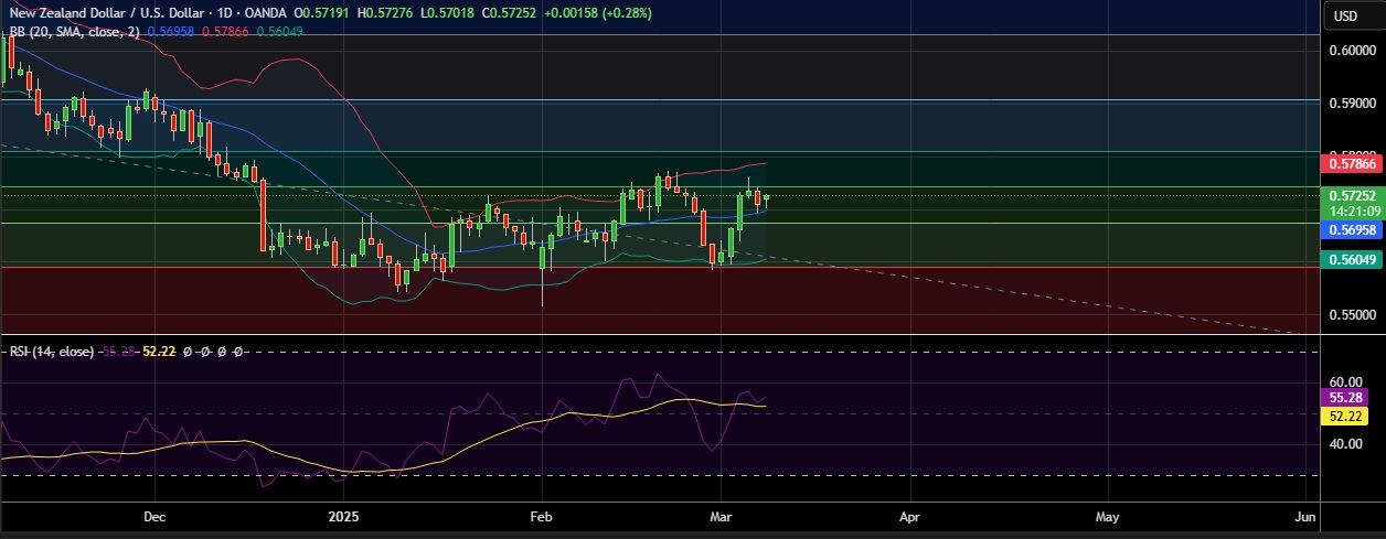 • At GMT 06:47, The Kiwi dollar was last trading up 0.35% to $0.5727 against greenback.