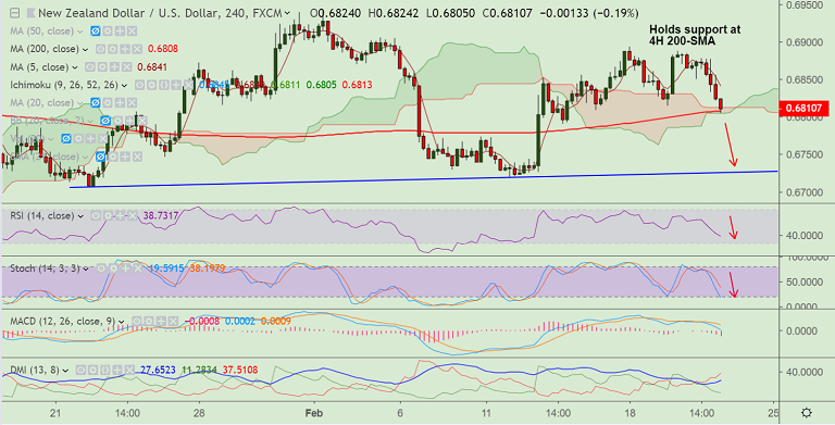 Resistance levels - 0.6830 (20-DMA), 0.6853 (5-DMA), 0.6893 (Feb 18 high)