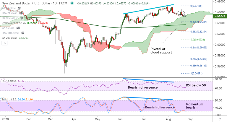 Price is holding strong support at daily cloud. Breach at cloud top will add downside pressure.