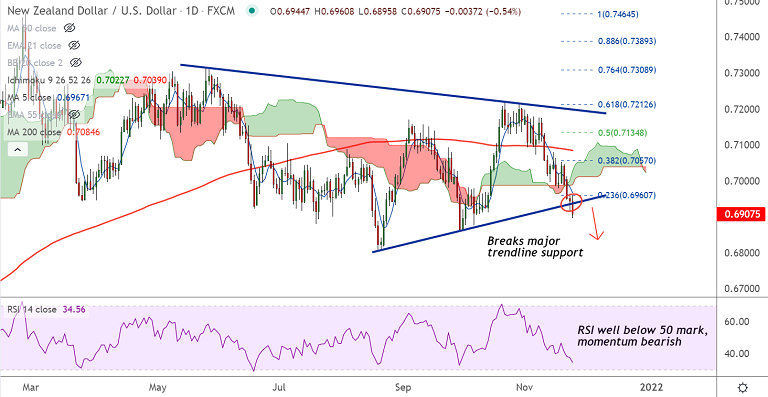 NZD/USD plunged over 0.60% to refresh multi-week lows below 0.69 handle, outlook bearish.
