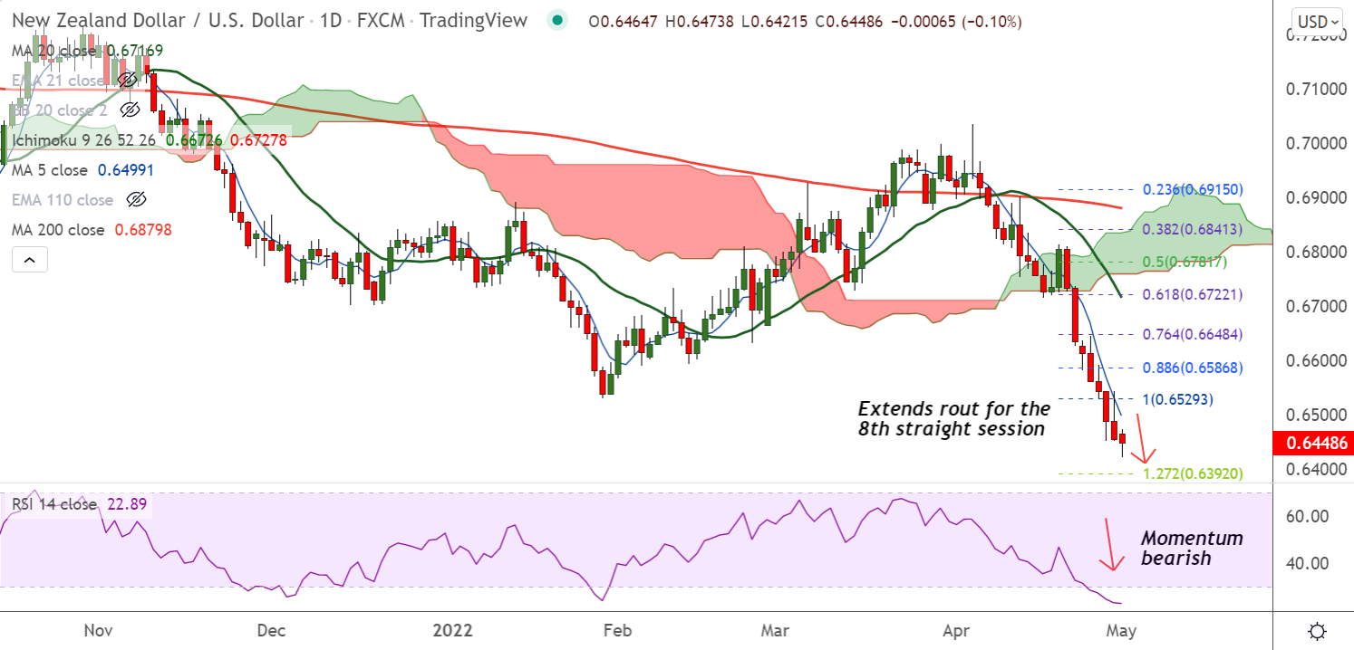 The major is extending bearish streak for the 8th consecutive session, outlook bearish.