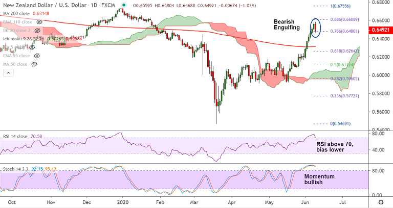 Sustained weakness could see dip till 200-DMA at 0.6314. Violation at 200-DMA negates any bullish bias.