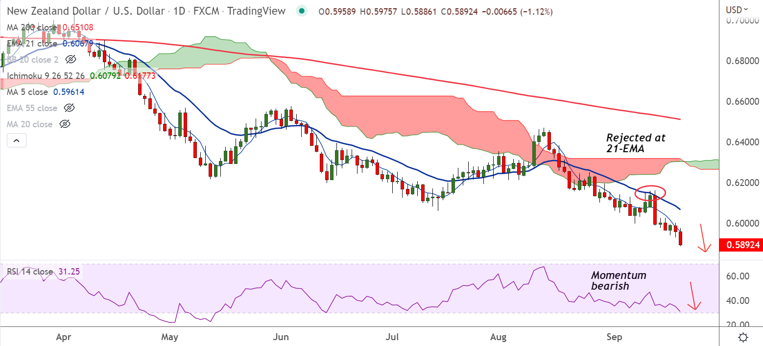 Summary: NZD/USD trades with a strong bearish bias, poised to test fresh multi-month lows.