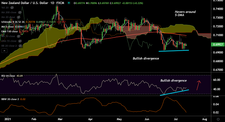 NZD/USD was trading 0.23% higher on the day at 0.6993 at around 05:15 GMT, slightly lower from session highs at 0.7009.