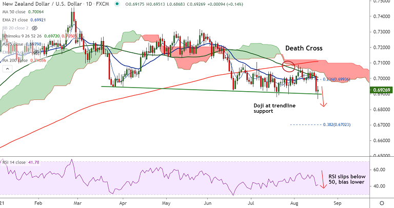 Apart from the virus concerns, geopolitical tension in Afghanistan and stimulus deadlock in the US also weigh on the risk appetite, denting the pair.