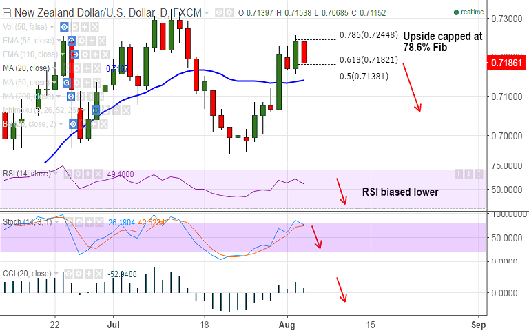 - Upside in the pair capped at 78.6% Fib at 0.7245, intraday bias lower.