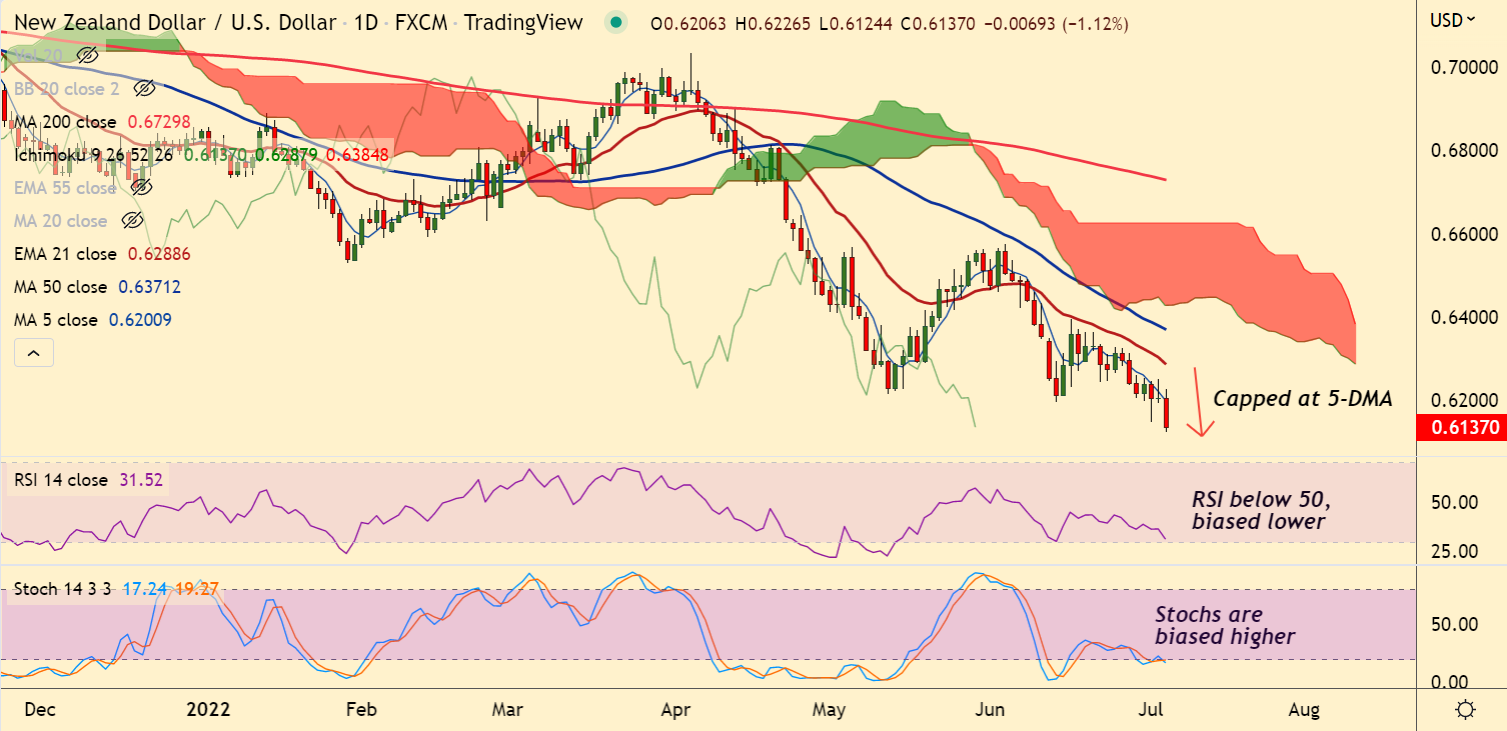Summary: NZD/USD trades with a bearish bias. Scope for test of fresh multi-month lows.