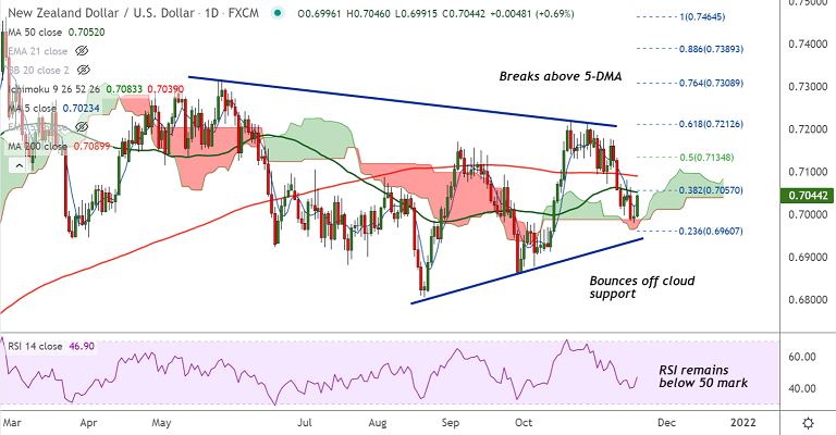Summary: Technical analysis shows the pair has bounced off daily cloud support and has broken above 5-DMA.