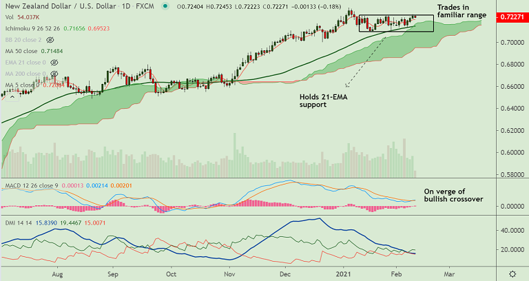The pair has paused three consecutive session's of gains, continues to extend sideways in familiar ranges.