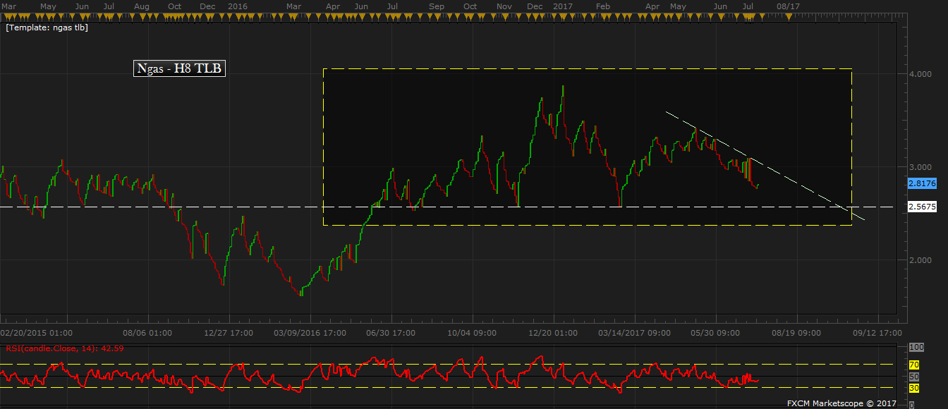 Technically speaking, U.S. natural gas is in the process of forming a bearish head and shoulder pattern and we expect any bullish correction in natural gas to remain capped under $3 per MMBtu. Natural gas is currently trading at $2.82 per MMBtu.