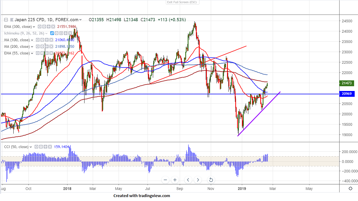 Asian markets are trading higher especially Nikkei jumped more than 0.5% on account US-China trade talks optimism and weak yen. US and China trade talks going very well and US President Trump said that Mar 1st deadline for China trade talks not magical date. US market has closed flat with Dow Jones at 25981 (0.03% higher) and S&P500 2779 (0.15% higher).The dollar has gained slightly almost 40 pips in today’s Asian trading session on easing geopolitical tension. The weaker yen has boosted demand for exporters such as automakers and machinery makers. USDJPY hits intraday high of 110.93 and is currently trading around 110.85.