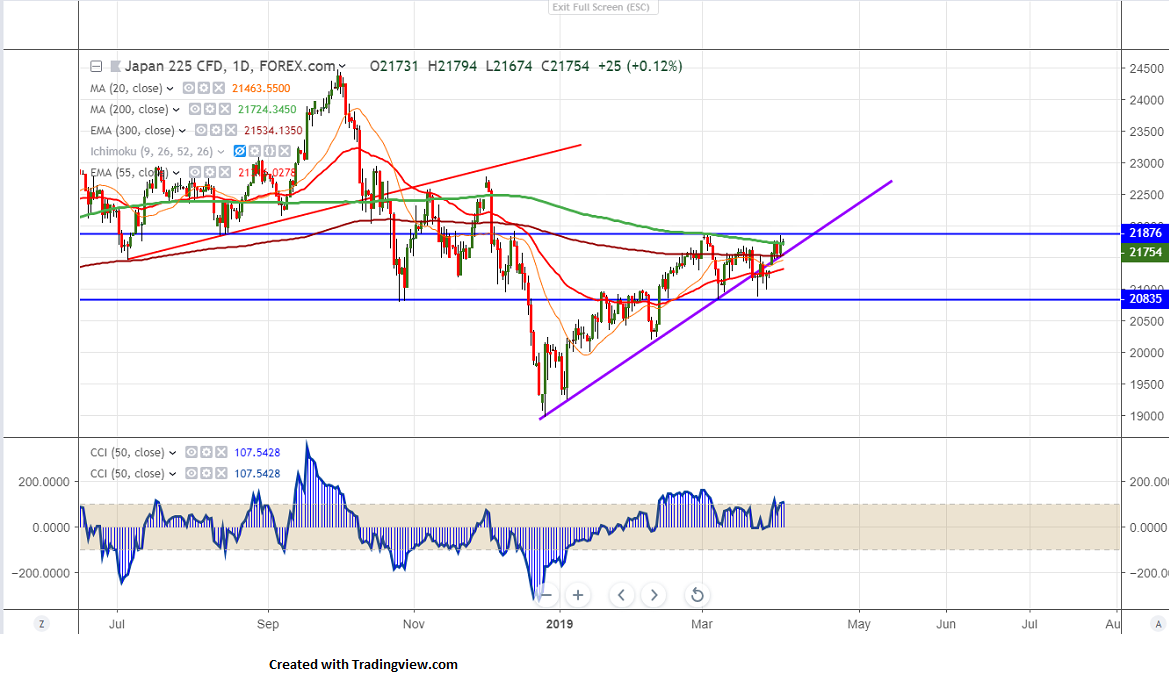 The near term resistance is at 21875 and any break above targets 22000/22180.