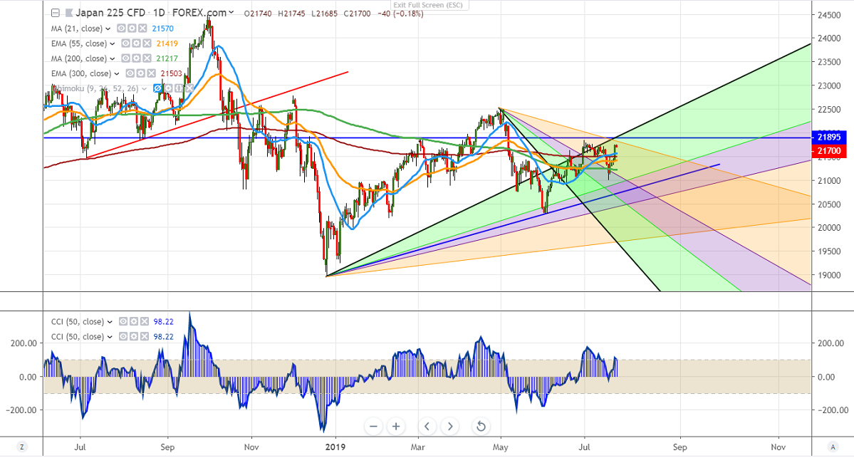 Technically Nikkei facing strong resistance around 21700 and any major jump can be seen only if it closes above this level. Any close above targets 22000/22280.