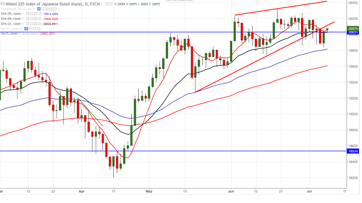 - The near term resistance of Nikkei is around 20400 (trend line joining 20230 and 20319) and break above will take the index to 20477 (161.8% retracement of 20019 and 19277) /20530 (161.8% retracement of 20220 and 19744)/20649 (161.8% retracement of 19698 and 18193).