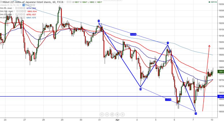 - On the lower side , 18500 will be acting as major support for Nikkei and any break below will drag the index till 18325 ( 61.8% retracement of 16106 and 16698)/18000 .