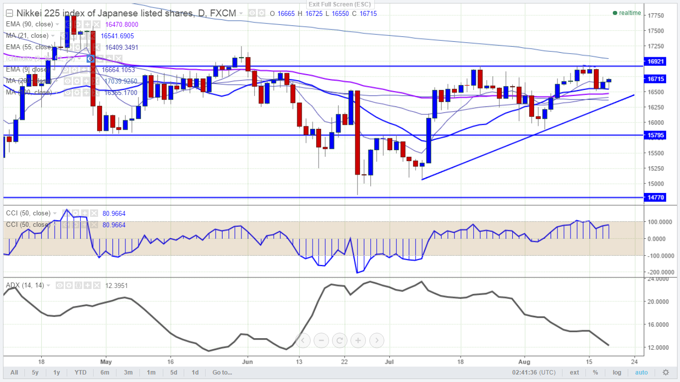 - Nikkei225 has once again regained after making a low of 16554. It is currently trading around 16678.