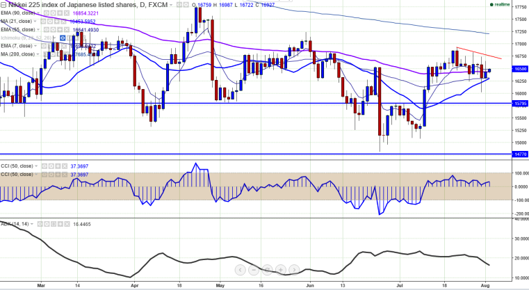 - On the lower side immediate support is around 16240 (Jul 26th low) and any break below targets 16000/15876 (daily Tenken-Sen).