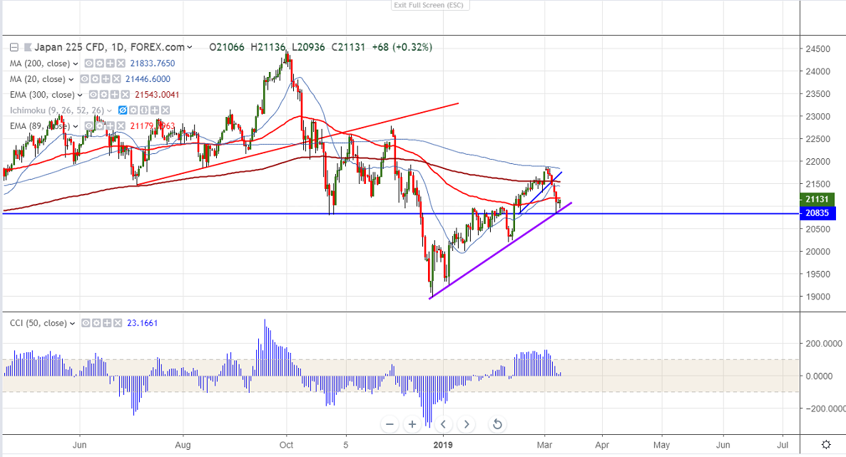 Asian markets are trading lower following foot steps of US market.US economy has added only 20000 jobs in Feb compared to forecast of 18000 and unemployment came at 3.8% vs estimate of 3.7%. US markets has closed lower for 5th consecutive day with Dow Jones at 25450 (0.09% lower) and S&P500 2743 (0.21% lower).Nikkei has has recovered nearly 250 points from low of 20836. USDJPY lost more than 100 pips from high of 112.13 level.It is currently trading around 111.08.