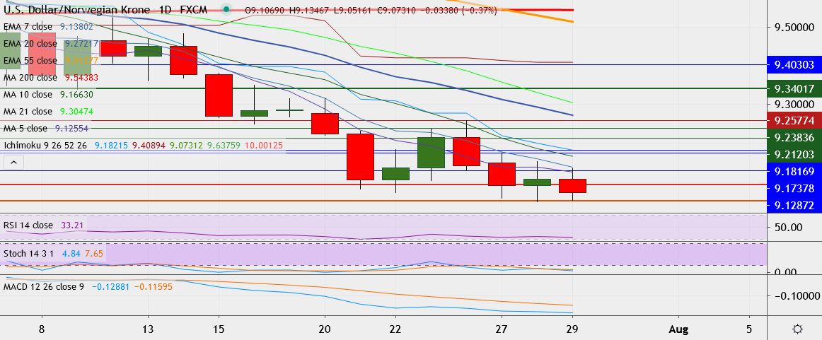 - On the downside, support is around 9.0394, break below could take it till 9.0176.