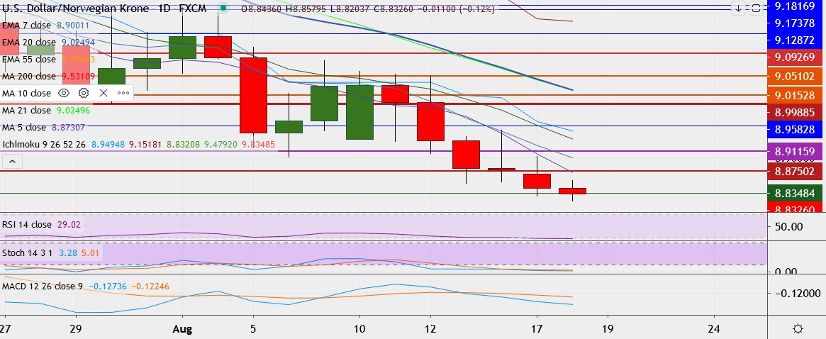 - Immediate resistance is located at 8.8724, close above could take it till 8.9071 (5-DMA).