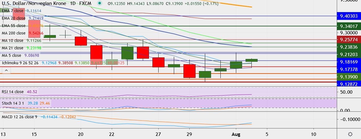 - On the downside, support is around 9.0806 (5-DMA), break below could take it till 9.0490.
