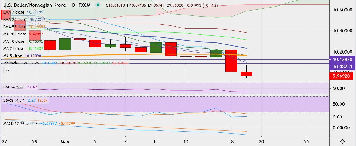 - Immediate resistance is located at 10.0919, close above could take it till 10.1389 (5-DMA).