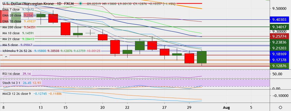 - Immediate resistance is located at 9.1615 (10-DMA), close above could take it till 9.1860.