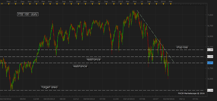 Recent recovery has given opportunity for bears to re-enter market at attractive rate. Sell FTSE100 at current price 5870, with stop around 6180 and target around 5200 area.